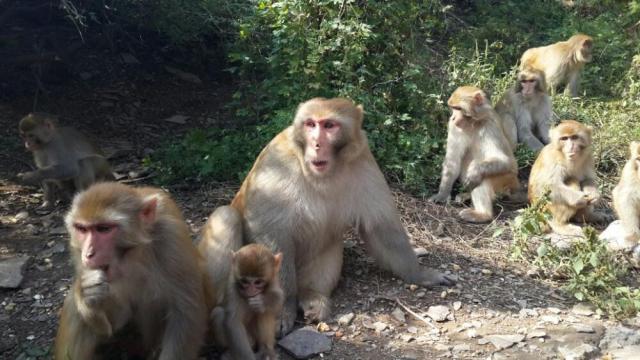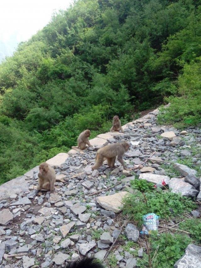 五龙口的猴子调皮可爱,走在猴子中
