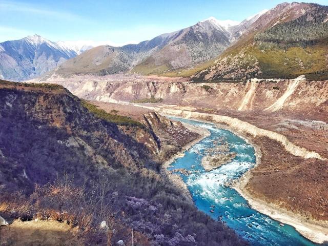 雅鲁藏布大峡谷谷地两侧是高峻的雪