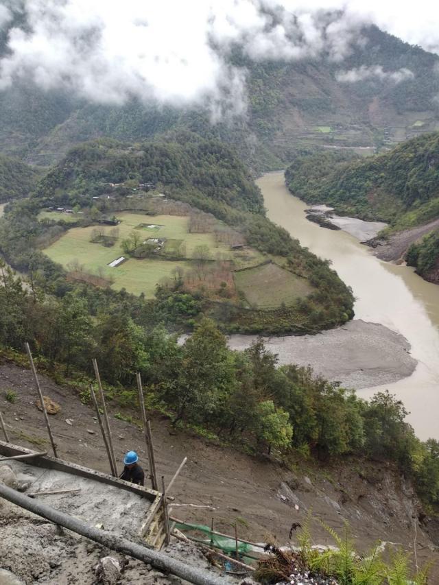 现在怒江第一湾在修路车子只能到第