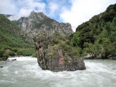 “中流砥柱”位于尼洋河中游,其所处在的位置山势险峻,陡象横生。石柱上长着一棵松树,并有多种植被装点,远处眺望,甚为壮观。因之奇特的造型和险要的位置,被当地人奉为神物,相传这块巨石是工布地区的守护神的座椅。...