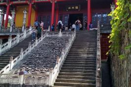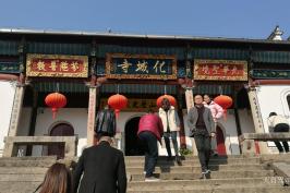 游览化城寺,化城寺为九华山开山祖寺,历史最悠久又是地藏菩萨道扬,是九华山寺院的"总丛林"。东晋隆安五年(401 年),僧人杯渡曾在此筑室为庵。唐至德年间(756-758 年)改建,定名为化城寺。"化城"源出于《法华经》中的佛教故事。