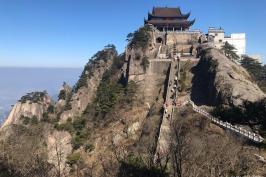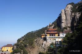 参拜九华山最高寺庙——天台禅寺,远眺海拔1342米的最高峰——十王峰,南望黄山如屏、北瞰长江如练,信步青龙背、捧日亭、一线天;