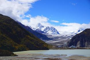来古冰川的名字来源于紧邻冰川的一个藏族小村落——来古村。周围遍布美丽的湖泊与宏伟的雪峰,是西藏已知的面积最大和最宽的冰川。