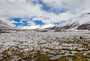安久拉山与众多名山大川的垭口一般都陡峭起伏,壁立千仞不同,安久拉山口平缓得出奇。就是这座看上去不起眼的属于伯舒拉岭山脉的安久拉山垭口,是怒江和雅鲁藏布江的分水岭。翻越了垭口,也就由怒江流域进入了生长传奇与神话的雅鲁藏布江流域。