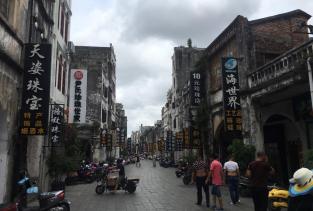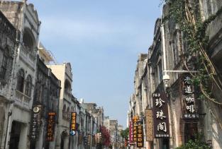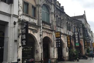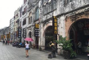 北海老街是一条有近二百年历史的老街,始建于1821年,沿街全是中西合璧骑楼式建筑的商业老街。这些建筑大多为二至三层,临街两边墙面的窗顶多为卷拱结构,卷拱外沿及窗柱顶端都有雕饰线,线条流畅、工艺精美。