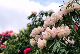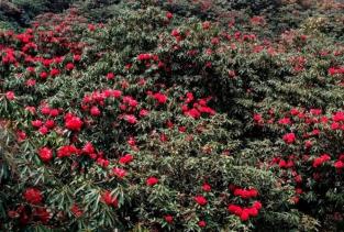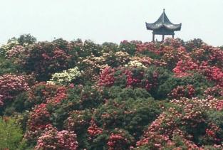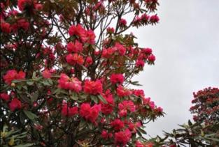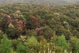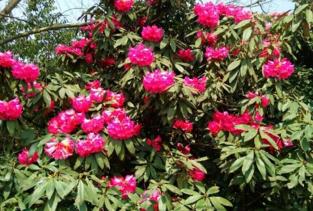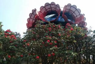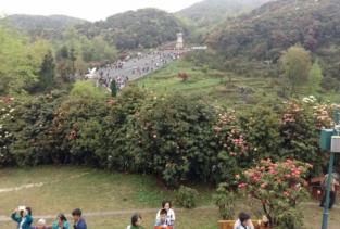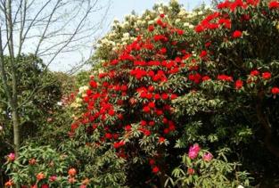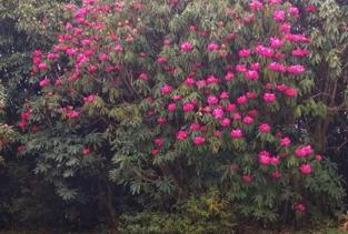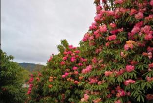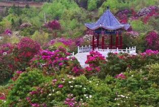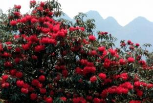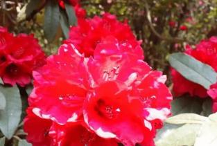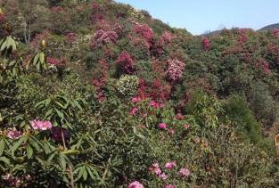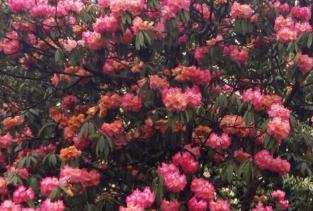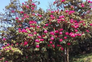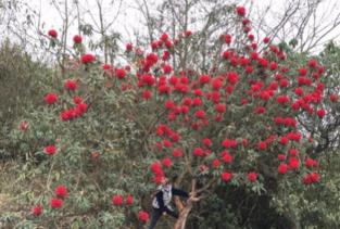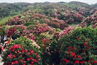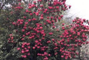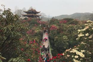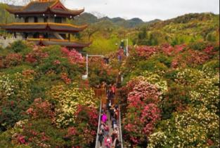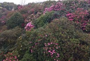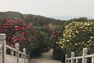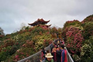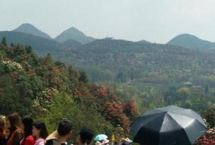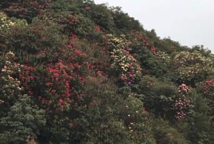 3月8日早上7点半从开阳县自驾出发来到百里杜鹃,走的黔贵高速,10点半到达景区停车场,由于是周末,车很多,景区管制不能将车开到大门,只能到指定停车场转乘大巴免费摆渡到景区大门,因提前在携程上订好票,到达时间也算早,进景区大门很便捷,没出现排队长等现象。 一进景区竞然是先过一个村寨,这让人有点摸不着头脑的感觉,四周望遍也难见一束杜鹃花,但走过村寨后,杜鹃花尤如循序渐进般映入眼帘,特别是顺木楼梯爬上山后,盛开的各种品种、各种颜色的杜鹃花迎面扑来,待登到山顶平台或凉亭放眼望去,漫山遍野都被大红、浅红、粉白,浅黄