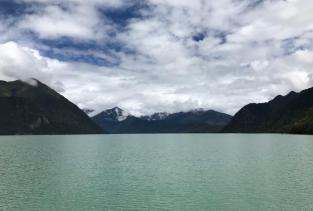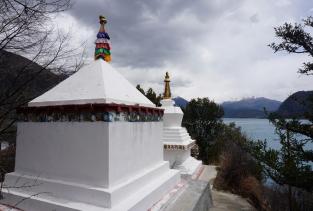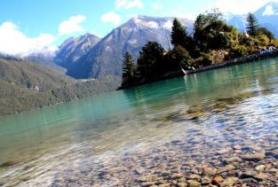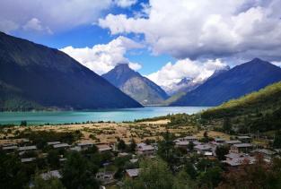 巴松措又名措高湖,藏语中是“绿色的水”的意思,湖面海拔3700多米,湖面面积达6千多亩,位于距林芝地区工布江达县50多千米的巴河上游的高峡深谷里,是红教的一处著名神湖和圣地。 巴松措在1994年被评为国家风景名胜区,同时被世界旅游组织列入世界旅游景区(点),2000年被评为国家AAAA级景区,2001年被国家林业部授予国家森林公园称号。 结巴村,有80多户人家,一水儿的原始工布风情的藏式建筑,听晋美说,村内还有少数一妻多夫和一夫多妻的家庭。村里的男女都喜穿氆氇制成的“果秀”(毛呢长袍),头戴黑白折围花裹毡