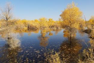 金塔胡杨林很惊艳,满目的金色倒映在湖面上,都分不出嘛边是真实,哪边是虚幻的!不枉专程绕道过去看