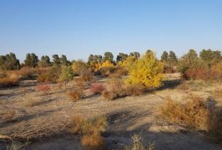 金塔胡杨林有大片的人工胡杨林和沙柳,这里可以感受到植树造林对人们生态环境的改善。