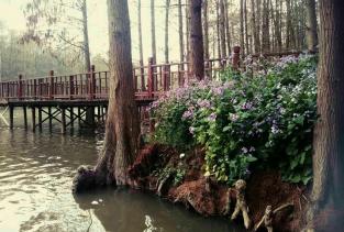 李中水上森林公园,景区好美,笔直的杉树直通云天,还有好多白色大鸟鸣叫、展翅。。。景区里二月兰开得正灿烂,不过雾境里的喷雾时间太短了。我们看到以后跑过去已经不再喷雾了。有点小遗憾。