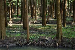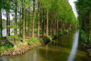 李中水上森林公园,地势平坦、河流纵横、季风气候、春秋两季、最为适宜。 天然氧吧、参天水杉、候鸟乐园、林中有水、水中有鱼。 原为荒滩,经过治理,现为人工湿地生态林。
