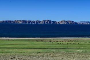 在色林措不仅可以欣赏到如梦如幻的美景;也可以感受藏北优美的草原风光。湖水清澈透明,应阳光照射折射出不同深浅的蓝色和绿色。云朵压得非常低仿佛伸手就可以触到。尽管没有大海的涛涌浪翻;却一样的波光粼粼 壮阔浩渺。