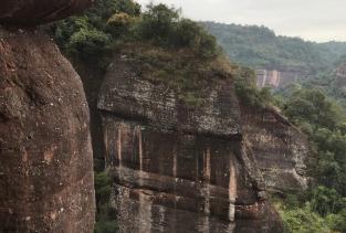 我们游丹霞山大约三个半小时也没有全部走完,可以说长老峰景区也是整个丹霞山最漂亮的风景,在此看完后向长老峰走,山路起伏不大,沿最左侧路走,经片鳞岩雪岩到长老峰,登长老峰一个环形路,不到100个台阶到顶看到相似又不同的风景,可看清山下望夫石,一柱石。