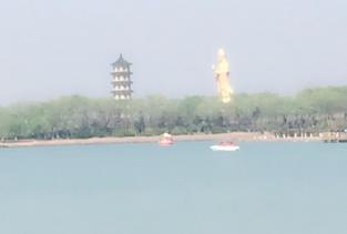 来到盐城最先去了大纵湖,喜欢大自然的空旷清新,绿色的湖面波澜不惊,芦苇荡的神秘令人向往,迂回的廊道,耸立的观音和古香古色的高塔,给游人留下了深刻的印象。