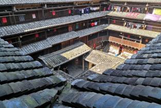 大地土楼群主要有三座楼:二宜楼、东阳楼和南阳楼。二宜楼是世界遗产名录上的,必须去,即使看过其他土楼也不要错过这一座。东阳楼和南阳楼靠的很近,一方一圆,其中一个已经无人居住了,好处是可以仔细看看土楼原来的结构,这两座楼走到二宜楼顶多十分钟。大地村的田园风光也非常美,看土楼时,别忘了到田间走走看看。