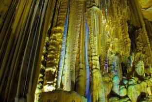 织金洞真的不错,,大气磅礴,,但里面的灯光白色和蓝色为主,略显单调。景区里面的旅游做得还是很成熟,但周边的住宿和餐饮都没跟上,想住好一点的只有织金洞大酒店了(在开往景区的路上就能看见,离景区很近),吃的话就去旁边的官寨古街(就在景区旁,很近)吃吧,住也可以在古街差,,但条件差很多,,美其名曰古街,其实都没有开发起来。。。如果不愿意就去织金县城吧。。。景区里面有织金洞和大峡谷两个景点,买套票肯定要划算很多,,,但大峡谷因为我们没去就不知道怎么样。如果有记者证是全免,连观光车都免。喜欢摄影的朋友一定要拿三脚架